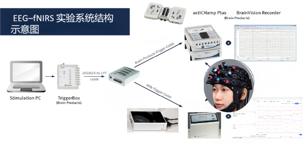 脑电(EEG)和近红外(fNIRS)在相同的神经活动中采用不同的方式捕捉信号。EEG-fNIRS同步系统有着更好的时间分辨率和空间分辨率互补性,结合这两种方法可以更全面地检测皮层的活动。